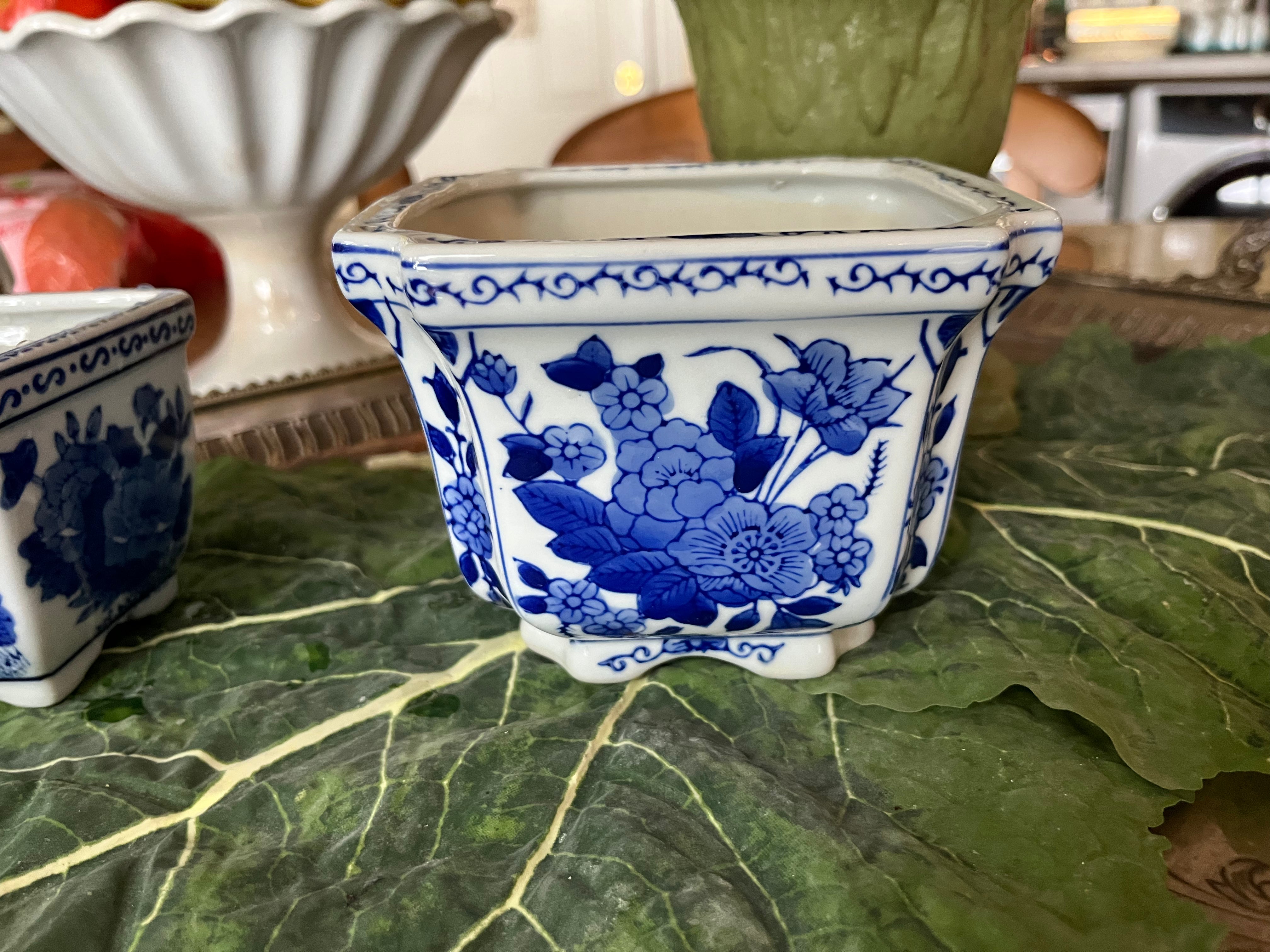 I love to group them together for maximum impact! These 2 are in excellent condition. No drainage holes.
